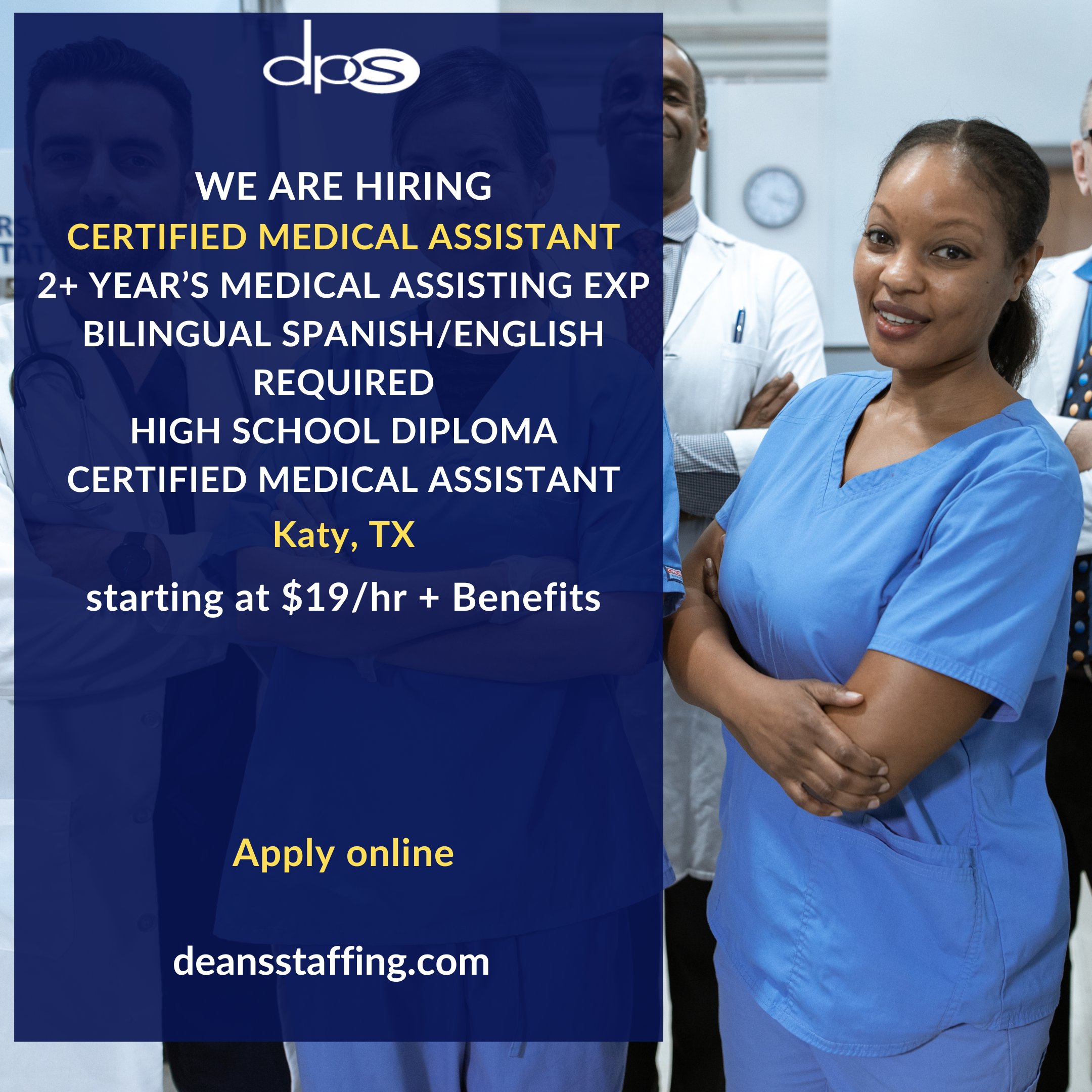 Dean S Pro Services On Twitter We Are Hiring A Qualified Patient Care Focused Certified Bilingual Medical Assistant To Work In The Katy Tx 2 Year S Medical Assisting Exp Bilingual Spanish English Required Starting At
